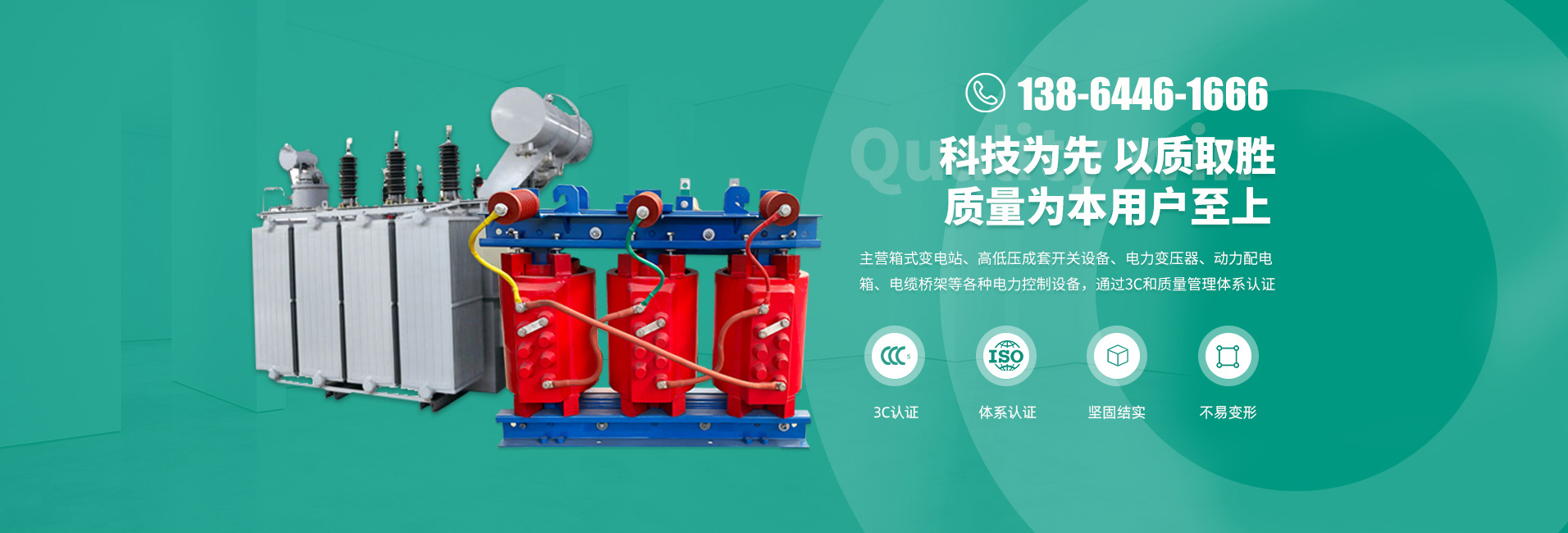 質(zhì)量體系齊全 是國(guó)家機(jī)械、電力兩部聯(lián)合頒布認(rèn)定的生產(chǎn)高、低壓開(kāi)關(guān)設(shè)備的專(zhuān)業(yè)生產(chǎn)廠(chǎng)家;主營(yíng)箱式變電站、高低壓成套開(kāi)關(guān)設(shè)備、電力變壓器、動(dòng)力配電箱、電纜橋架等各種電力控制設(shè)備,并通過(guò)CCC和ISO9001質(zhì)量管理體系認(rèn)證。